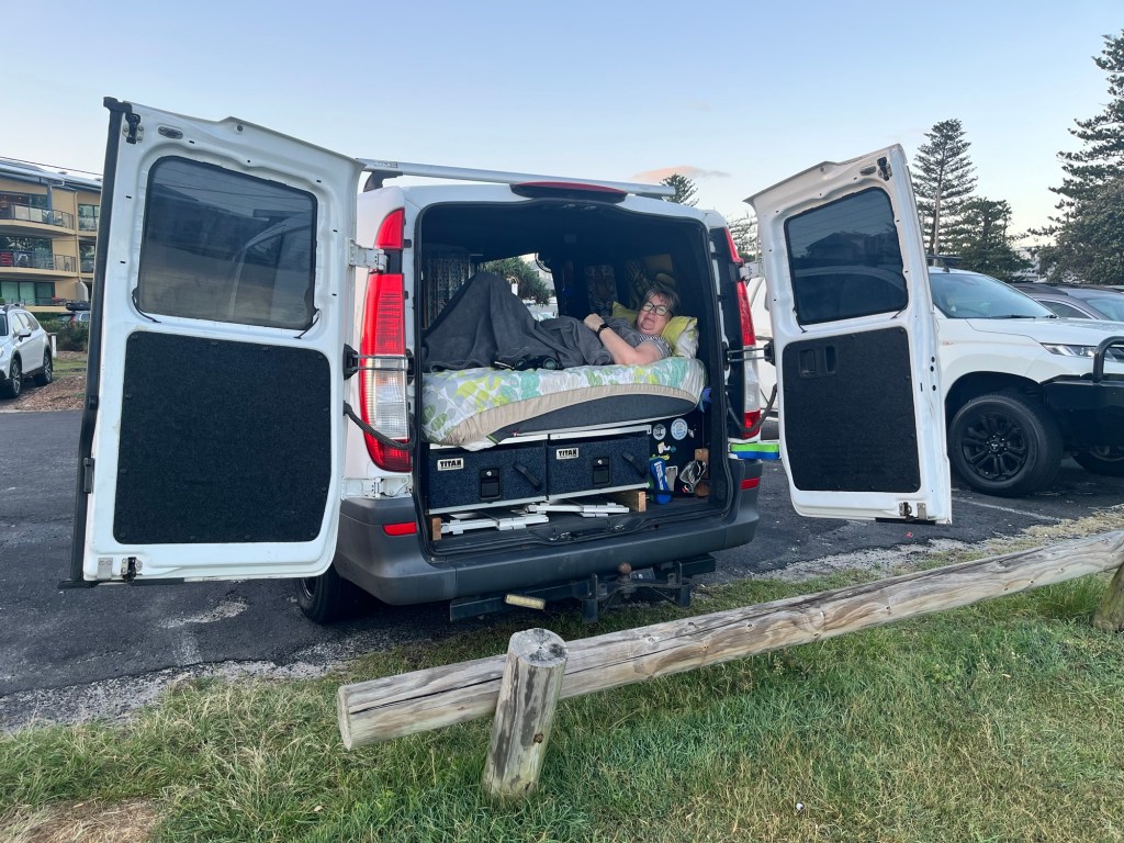 Back to the van (parked in the driveway) for bed, and then a change of location to wake up to! My friend woke up early and moved us up to the beach to watch the sunrise… and I have to say it is one of my favourite ways to wake up!! … followed by brekky, and then the drive home to get all the chores done before the work week starts again.