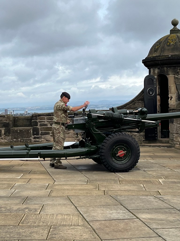 We wandered in and out of all kinds of buildings, including a chapel that has been there since 1130 and was built by King David for his mother Margaret. She was made a saint in 1250. It is a tiny space that has been a sanctuary for kings and queens for centuries and is the oldest building in Edinburgh. It is beautiful. We saw the Crown Jewels of Scotland and all kinds of war memorabilia; and just before we left, we joined a huge crowd to hear the 1pm gun get shot. The gun has been shot at 1pm everyday since 1861 to help the ships in the port of Leith keep time and set their chronometers accurately to determine their longitude at sea. … even knowing that it was coming, we still jumped at the noise!