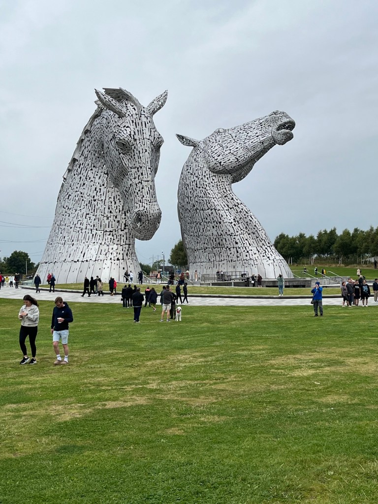 Day four was D’s birthday, and a typical Scottish day as far as the weather went…. Showers on and off with blue sky inbetween. After Brekky, we went for a drive to see the Kelpies. Gigantic horse heads made from steel that rise up out of the ground. They are fabulous! The walk up to them goes along a canal that has all kinds of bushes along its edge. I loved being able to pick blackberries and rosehips as we were walking past. D was excited to find an ice cream vendor who had Double Nougats – an ice cream sandwich I have heard so much about for a long time! It was pretty yummy!