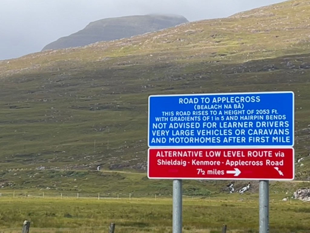 Next came one of the things we have been most looking forward to! A road called Bealach na Ba. We had seen it on the show on SBS that I mentioned previously, and although we had an idea of what it would be from watching that show, the reality was so very much more! The road was built in 1822 as a drivers road. It has , very tight hairpin bends that switch back and forth up the hillside and gradients that approach 20%. It has the greatest ascent of any road climb in the United Kingdom, rising from sea level at Applecross to 626 m (2,054 ft) in about 6 km (3.7 mi), and is the third highest road in Scotland. (Wikipedia) The facts are one thing, but actually driving the road was something else. It is breathtaking! I honestly don’t have words for how amazing it was, it brought me to tears! (Yes I know I cry a lot, and at almost anything, but this was truly next level!)