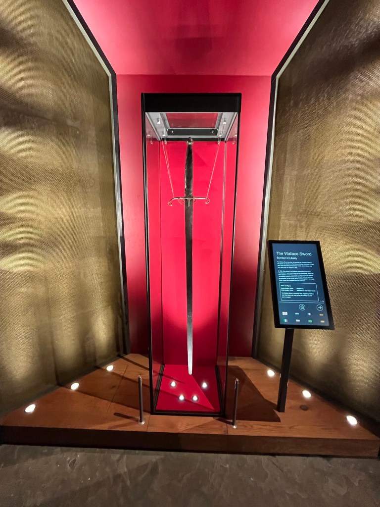 The view from the top was not quite as nice as it might have been later that day when the sun came out, but it was easy to imagine what we would have seen. To get to the top there were 146 steps to climb, with 3 landings that housed displays, including a replica of William Wallace’s sword… it was really interesting and I’m glad we managed to get there. I was also very impressed having heard D tell me the story of him and two of his mates, setting a Guinness book world record back in 1988 for running up and down the steps as many times as possible in one hour. They managed 15 times up, and down, each!!