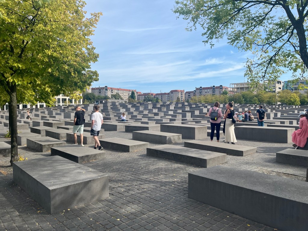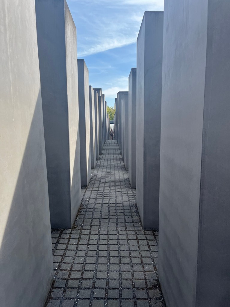 Our final stop for the day was at the Monument to the murdered Jews – a holocaust memorial. It consists of a 1.9-hectare (4.7-acre) site covered with 2,711 concrete slabs arranged in a grid pattern on a sloping field. The slabs are 2.38 m long, 0.95 m wide and vary in height from 0.2 to 4.7 metres. They are organized in rows, 54 of them going north–south, and 87 heading east–west at right angles but set slightly askew. An attached underground “Place of Information” holds the names of approximately 3 million Jewish Holocaust victims, obtained from the Israeli museum. It is an impressive, thought provoking and reflective, peaceful place to walk.